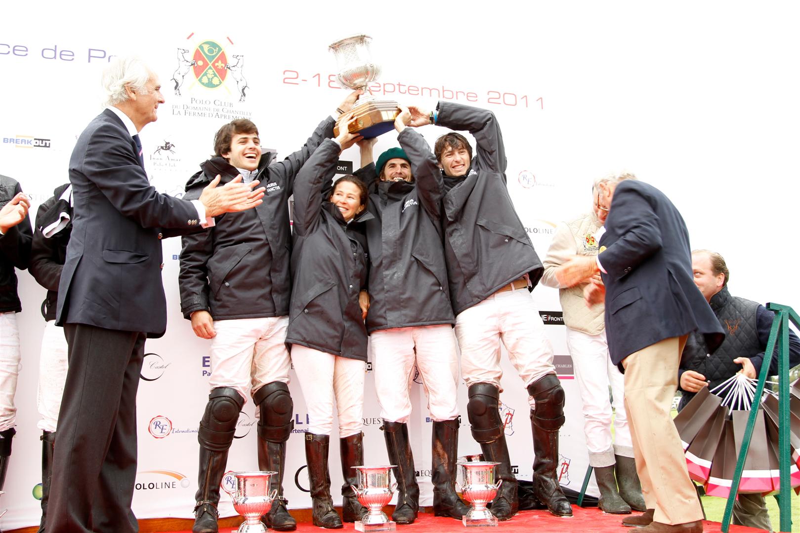 In spite of an injured right wrist, Dario Musso was able to transform a spectacular penalty from the middle of the field, but Matias Benoit scored the goal that brought about the victory for his team. Dario Musso had the chance to change the score into a favourable one for his team a few seconds before the end, but the penalty at 60 yards did not turn into a goal. It was a beautiful final match with many twists to it, with an amazing winning team and  - despite the unfavourable weather conditions – a great audience. Although it was a final in the rain, but that did not disturb the players at all as the grounds were of good quality. Besides, players like Facundo Sola should have the habit of playing under such meteorological conditions: He won the Queen’s Cup in England (with another French team) when the weather was similar to that in Chantilly. The Argentinean ace appreciated the high standard of this 11th French Open and promised to come back next year.